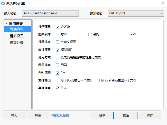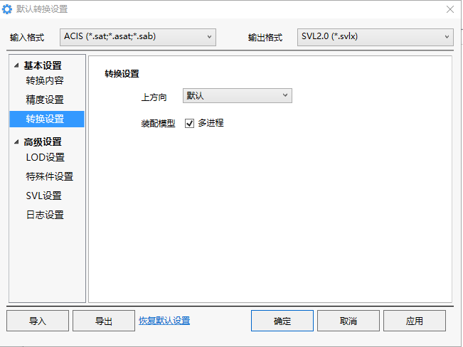 装配模型:多进程 含有多个物理文件的零件的模型转换时,启用多进程降低转换用时。不含物理零件的模型转换勾选此项仍会用单进程的方式转换。