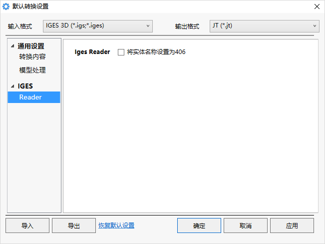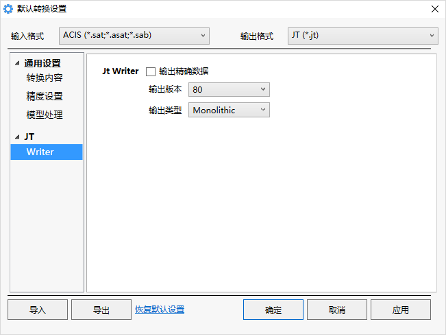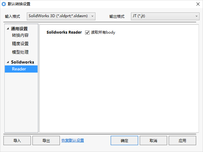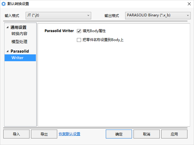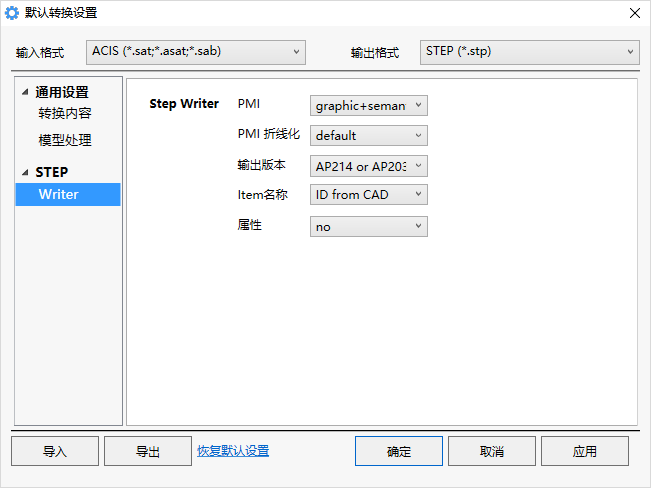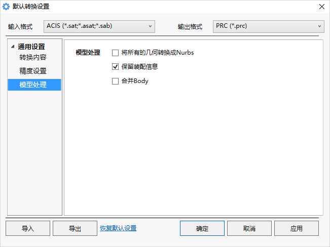 注意:当输出的格式为Catia、Step、ProE等非轻量化格式时,该选项不显示
