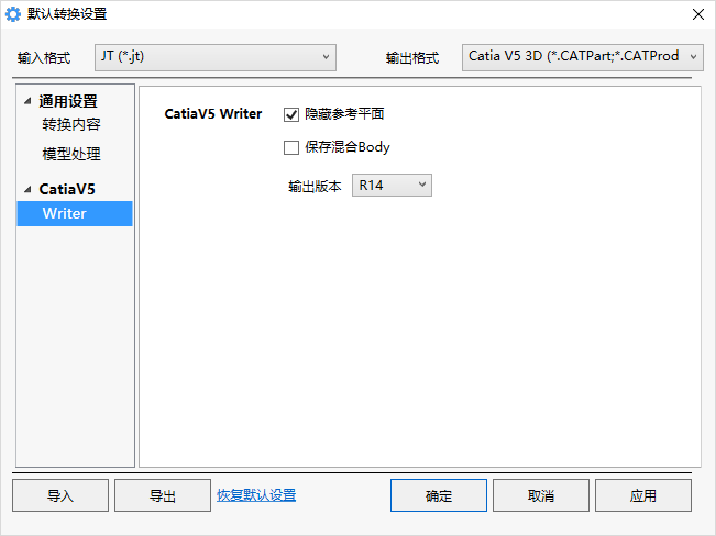 输出版本:支持输出的Catia版本(R14 to R19)