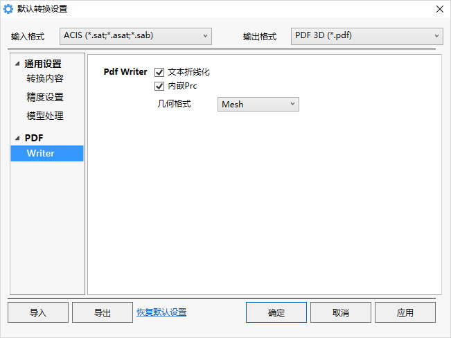 几何格式:Mesh意思是三角面片数据存储几何数据;BRep意思是边界表示法存储几何数据;Mesh+BRep意思是保留原有几何数据存储方式;