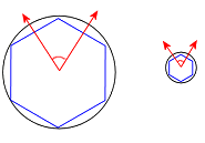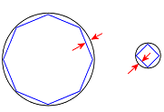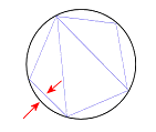 折线公差:所有几何图形都具有相同的折线误差。折线误差是几何图形的三角形和原始几何图形边线之间的距离。在此图像中,黑色圆圈是原始几何图形。蓝色三角形定义几何图形。折线误差是以红色箭头表示的距离。