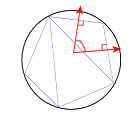 角度公差:所有几何图形都拥有相同的法线偏差。角度公差是定义三角形几何图形的边线法线之间的角度。在此图像中,黑色圆圈是原始几何图形。蓝色三角形定义几何图形。角度公差是红色箭头之间的角度。