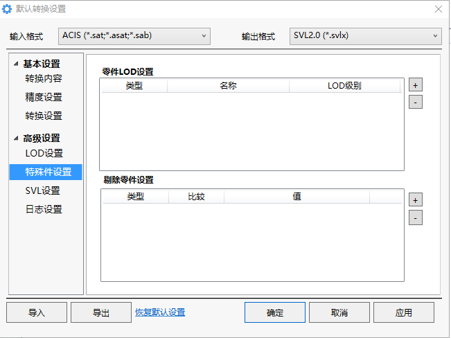 零件LOD设置:添加特殊件并选择特殊件的LOD输出级别;