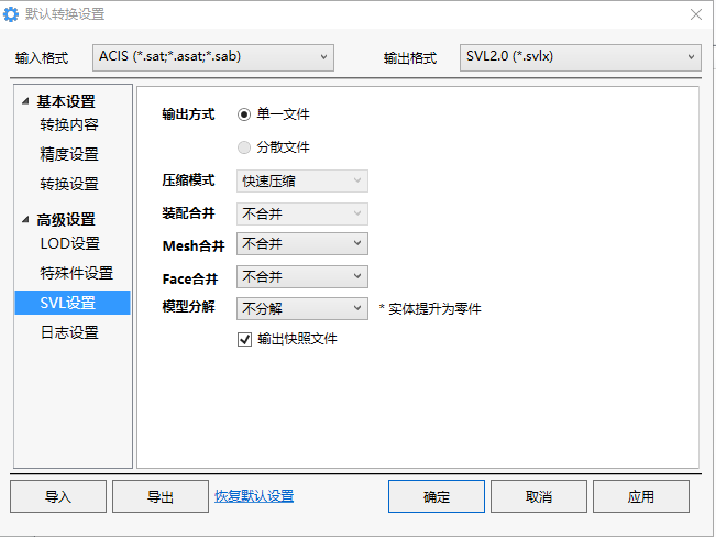 输出快照文件:如果原模型内有快照,勾选此文件在转换模型的同时会单独输出一个jpg格式的快照图片。
