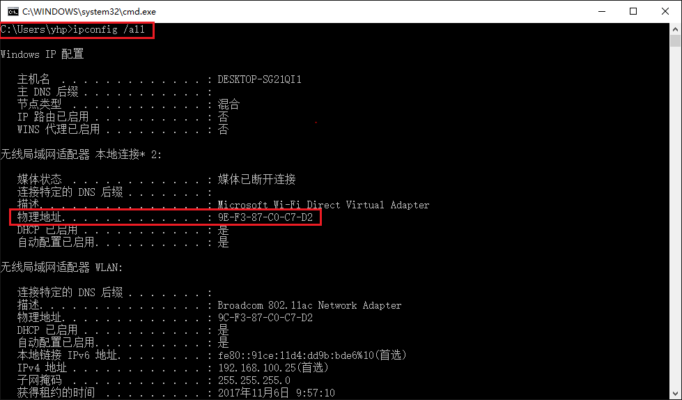 3).请确认您的Mac地址是否正确。