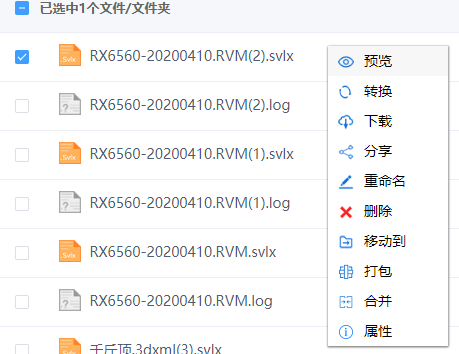 - 预览:预览选中的文件,多文件预览仅支持svlx格式