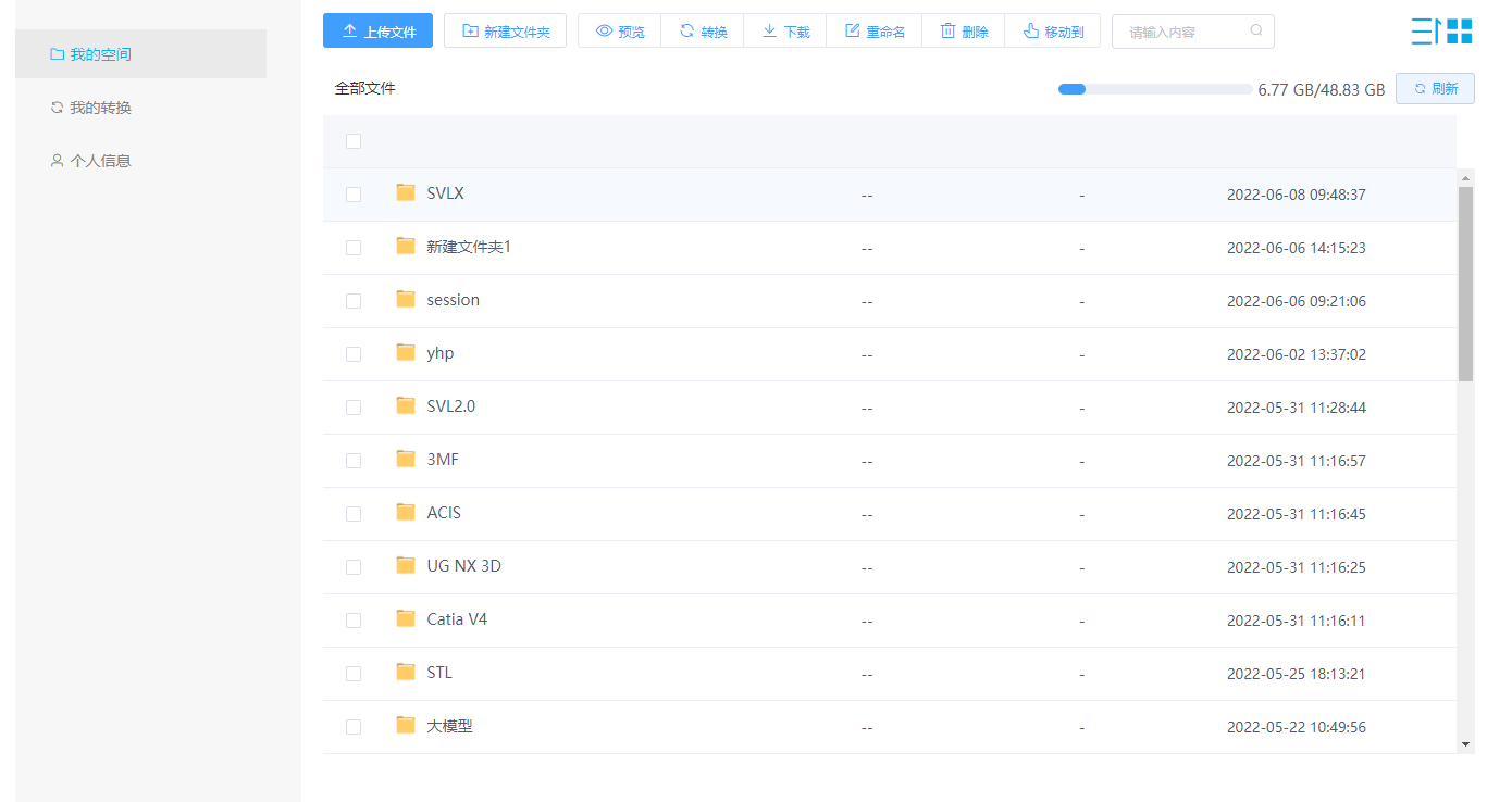 服务端主要包括样例库模型的查看及下载、许可申请、产品展示及下载、模型转换、我的空间等操作,以下为各个功能模块的具体描述。