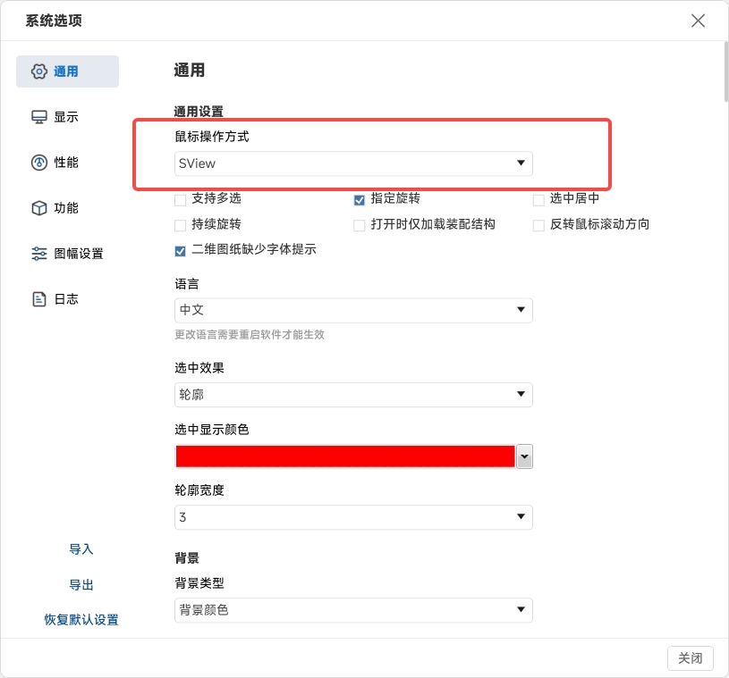 SView支持多种鼠标操作方式,可通过系统选项进行修改: