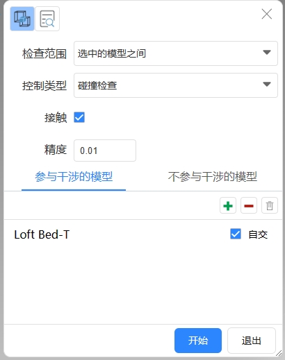 选中的模型与其他模型:“参与干涉的模型”列表中模型,与其他未添加进列表中的模型进行干涉检查。